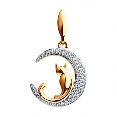 Gold Pendant with cubic zirconia "Kitty on the moon"
