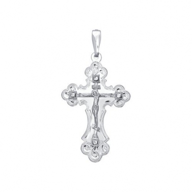 Silver cross with engraving and cubic zirconia