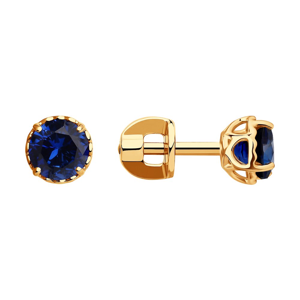 Gold earrings with blue corundums