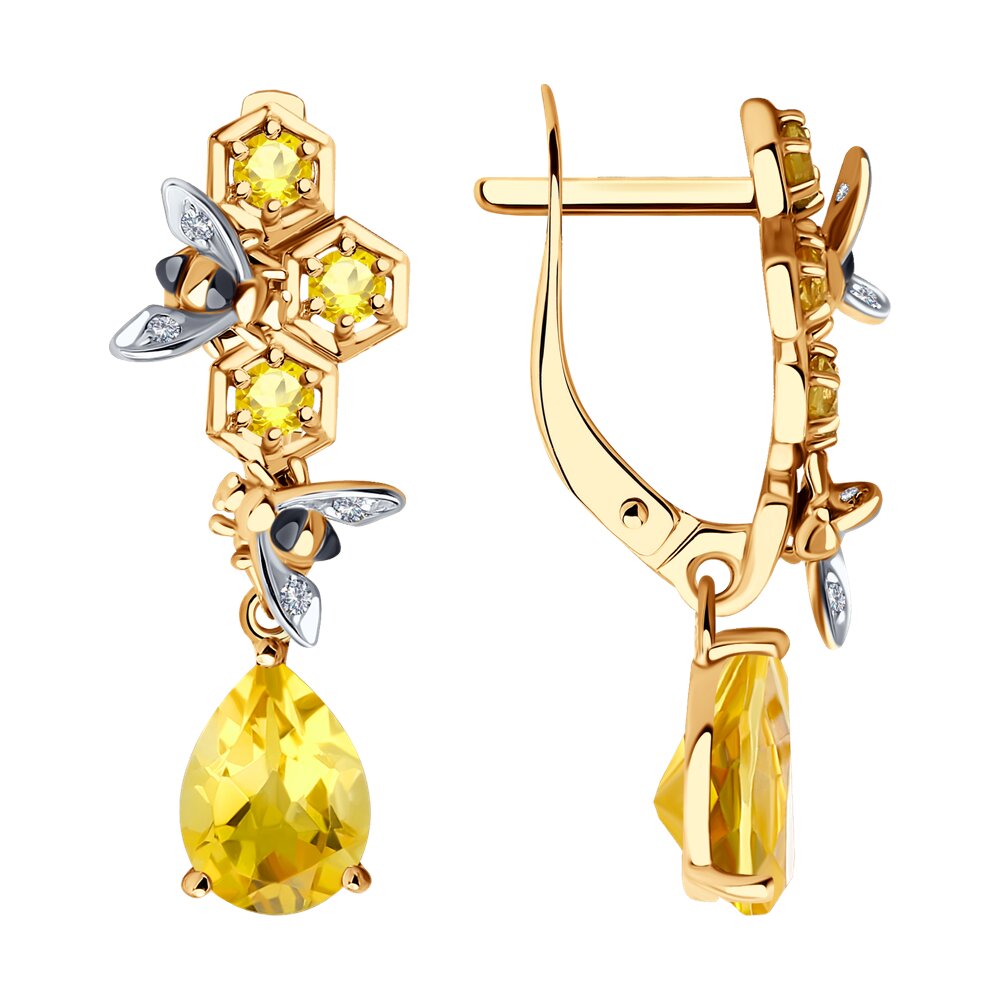Gold earrings with citrines and cubic zirconia